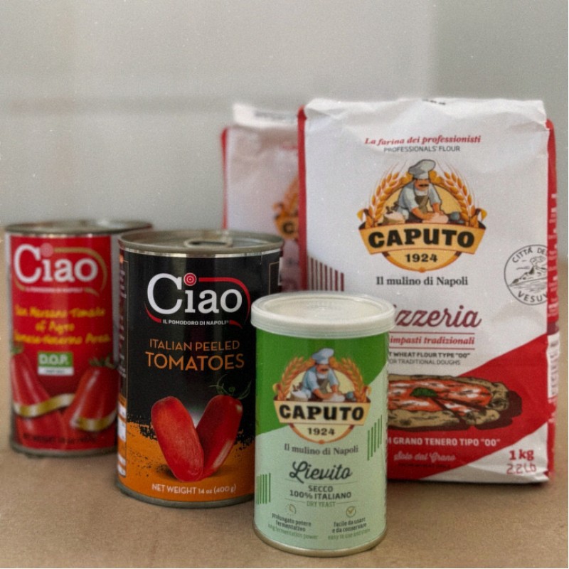 2кг брашно за пица Pizzeria Caputo, 100гр Caputo сув квасец, 400гр пелат San Marzano, 400гр лупен пелат Ciao