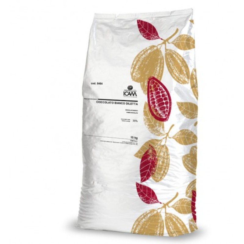 Млечни бели чоколадни со минимум 24% какао и 25% какао путер. Пакување 15кг. Производител ICAM, Италија.