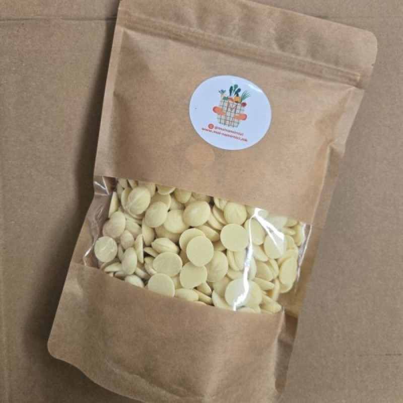 Бели млечни чоколадни капки со 25% какао путер. Производител ICAM Италија. Рефусно пакување 1кг.